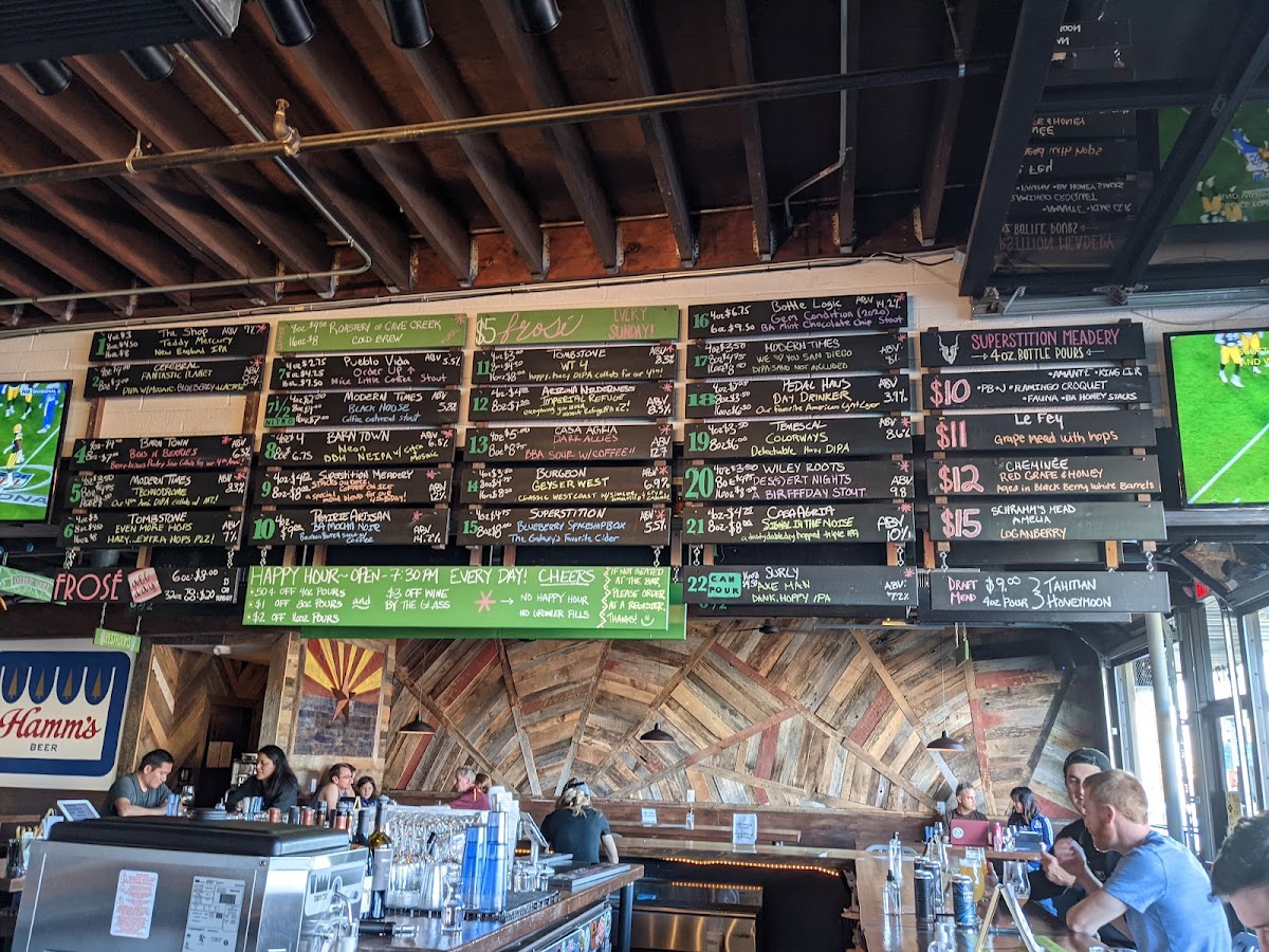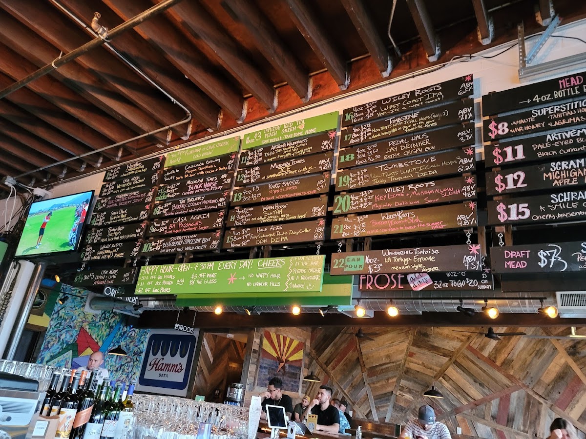 Welcome to The Wandering Tortoise, a vibrant open-air taproom located in Phoenix, AZ. Known for its extensive selection of craft beers, this spot boasts a welcoming atmosphere perfect for beer enthusiasts and casual visitors alike. The menu features an eclectic range of beverages, including delightful meads priced at just $7.50 to $13.00, and an impressive assortment of red wines with options like the True Grit Petite Sirah for $12.00.
